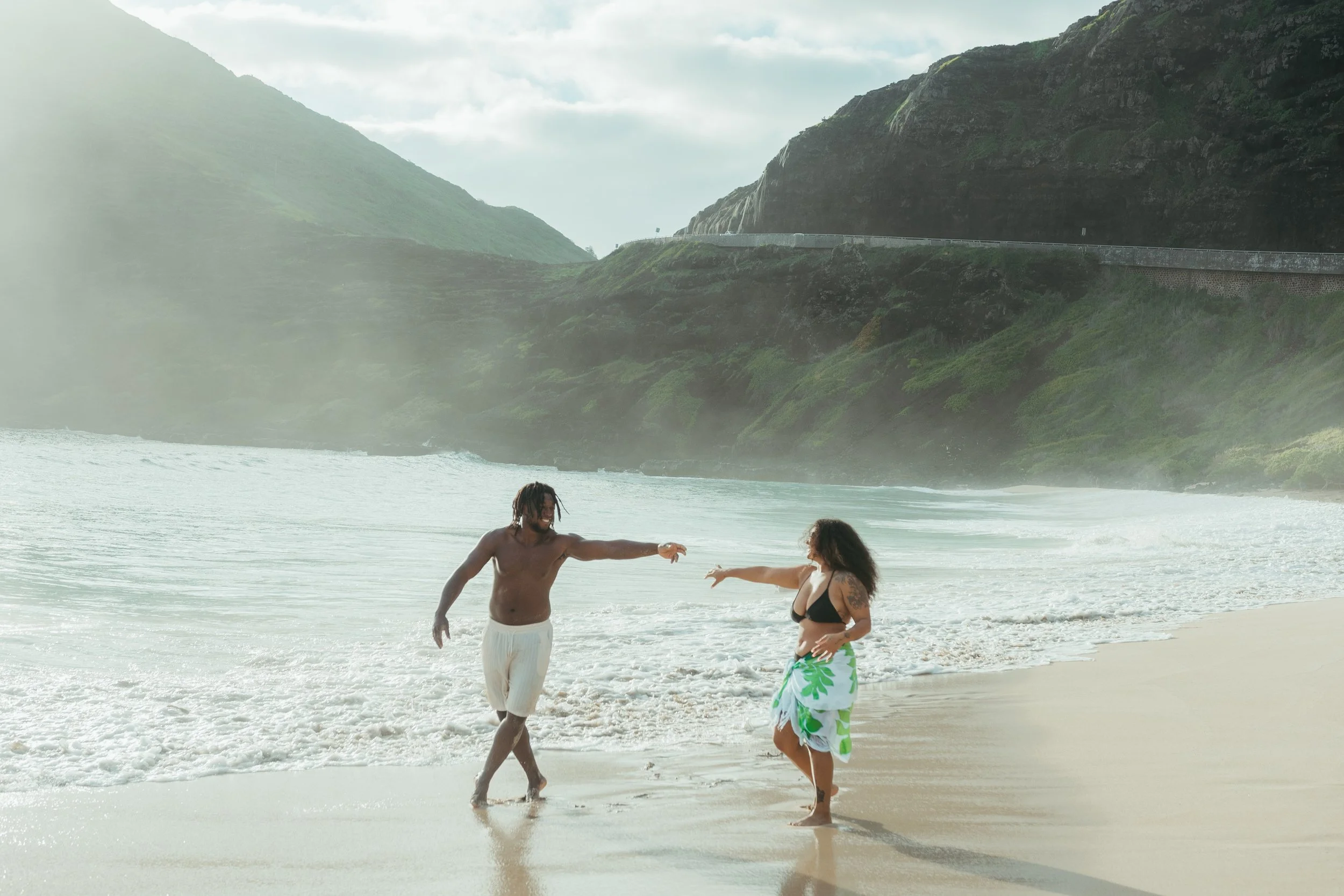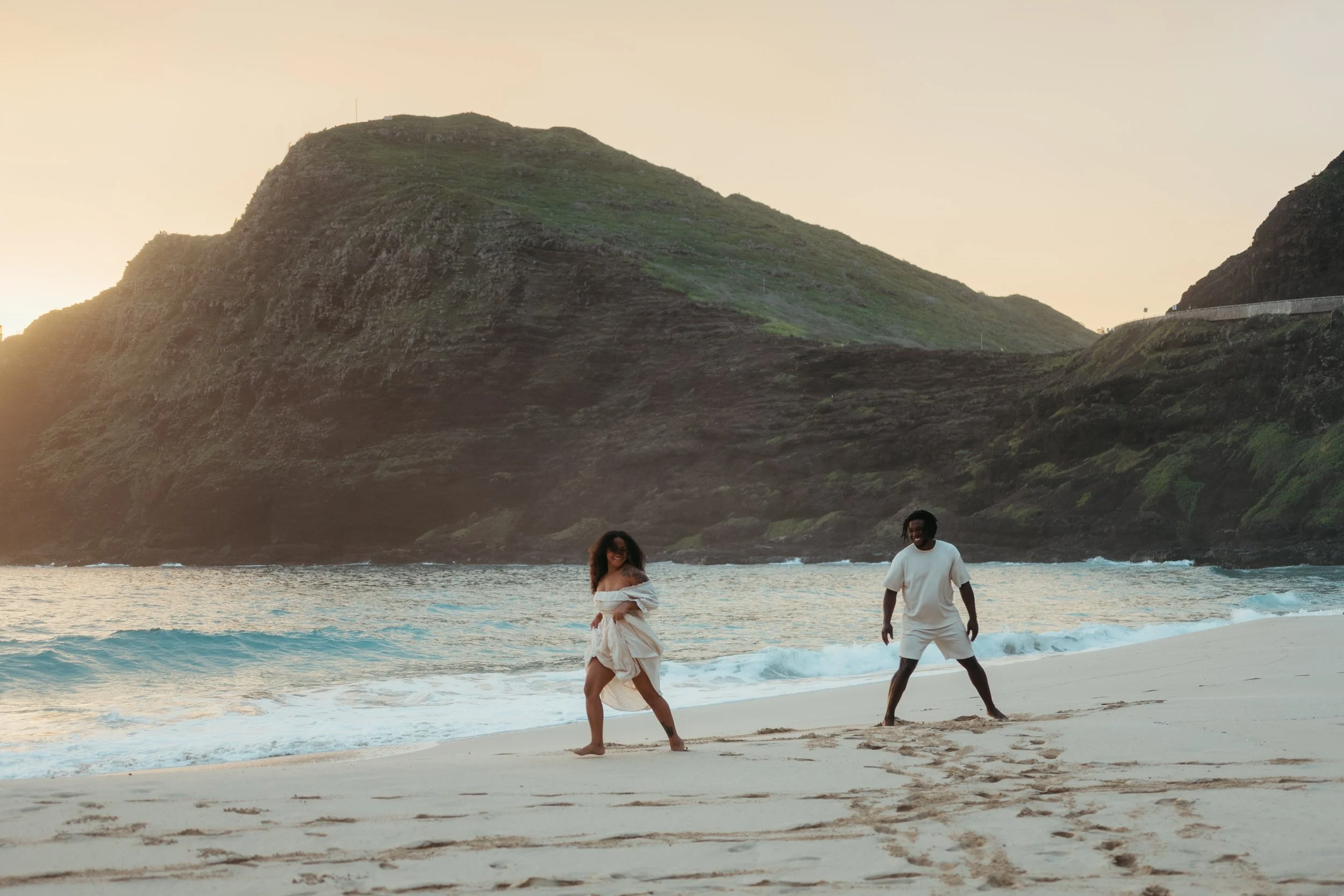 I always encourage some kind of movement. Whether we’re hiking up a ridge, running barefoot on the sand, or just walking through the forest holding hands, movement helps you relax and forget the camera’s even there.